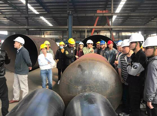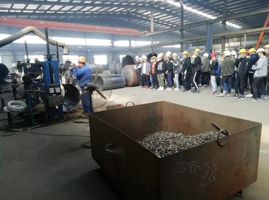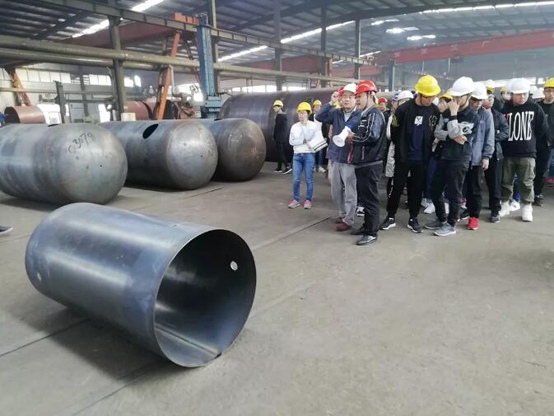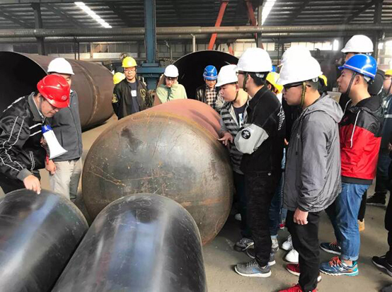 姜總監(jiān)生動(dòng)形象介紹壓力容器的生產(chǎn)工藝、生產(chǎn)過(guò)程、下料、水壓試驗(yàn)……,同學(xué)們還重點(diǎn)參觀學(xué)習(xí)了自動(dòng)焊、二保焊、氬弧焊等焊接工藝。